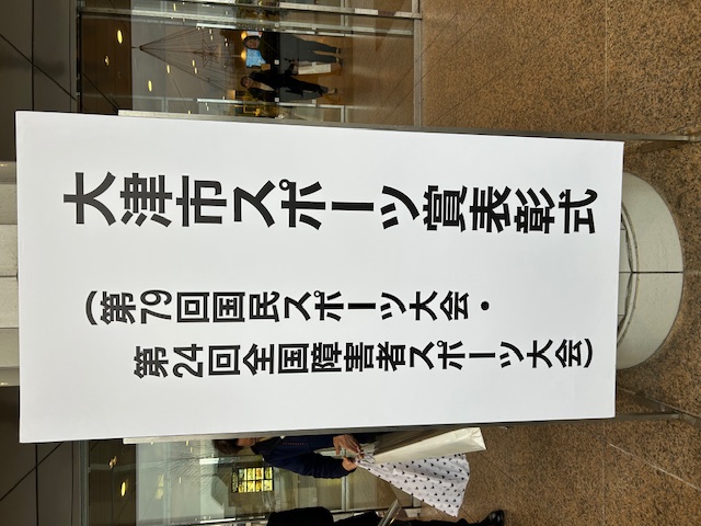 本表彰式は、「わたSHIGA輝く国スポ・障スポ(第79回国民スポーツ大会・第24回全国障害者スポーツ大会)」において、見事優勝を果たした選手を称えるものです。佐藤健司大津市長より、受賞した各選手へ表彰状が授与されました。